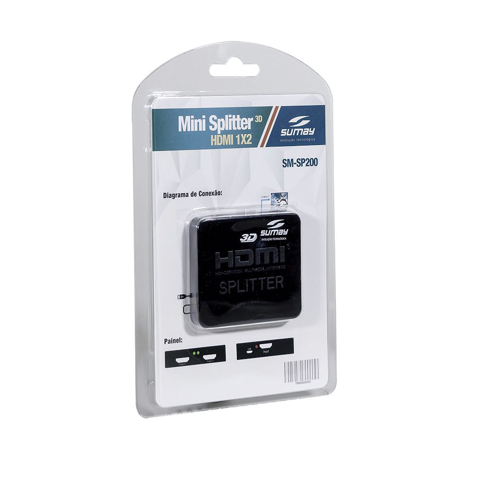 O Splitter HDMI 1×2 disponibiliza uma única entrada HDMI (input) distribuindo simultaneamente o sinal para até duas saídas HDMI (output). Compatível com TVs, monitores ou projetores HDMI.